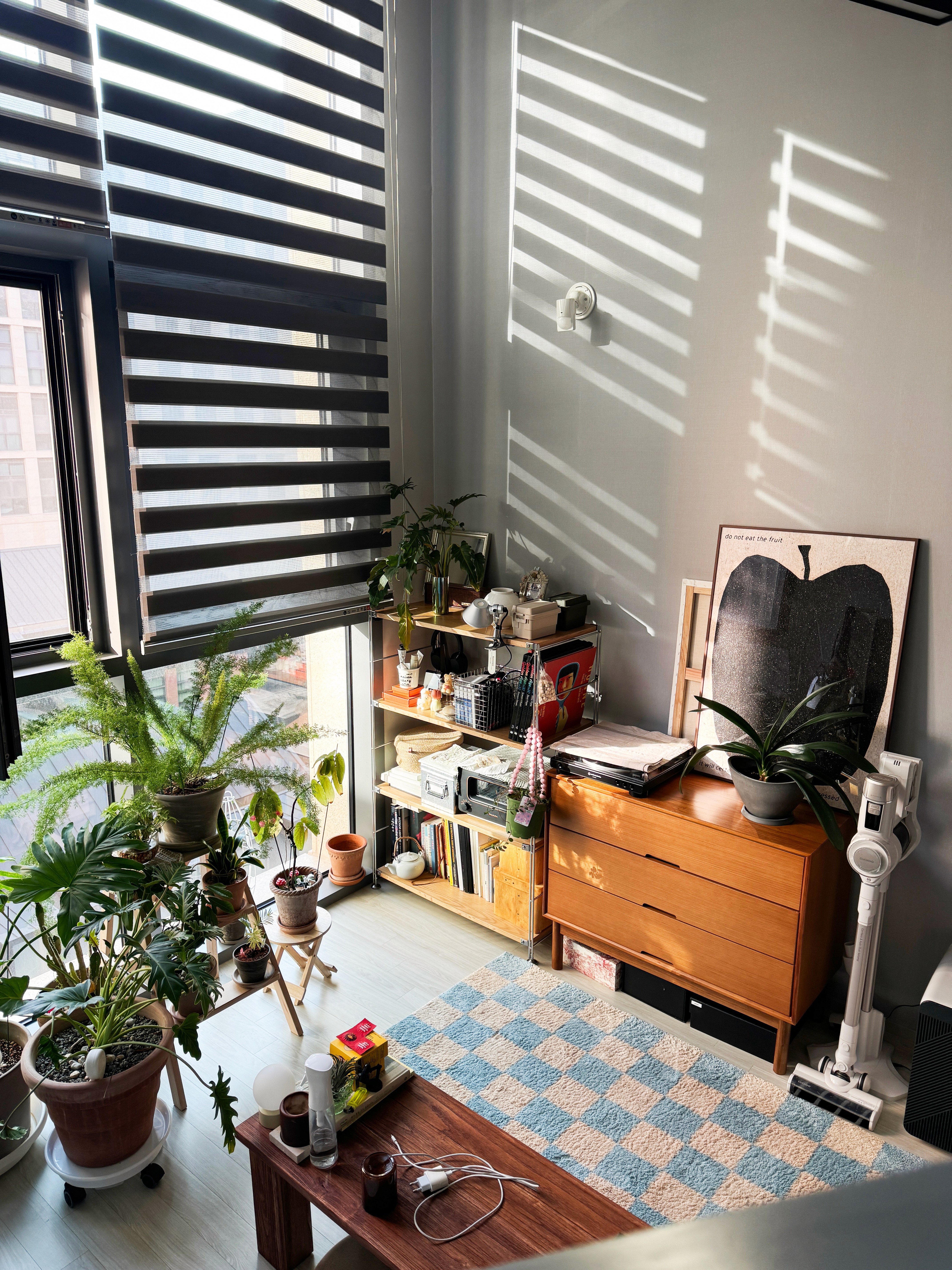 제가 좋아하는 조명, LP, 식물들, 가구가 모인 거실은