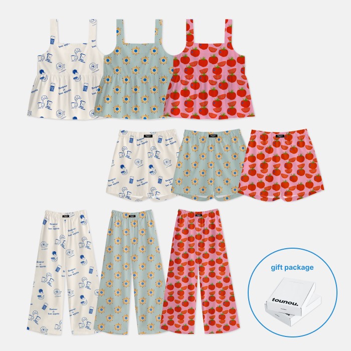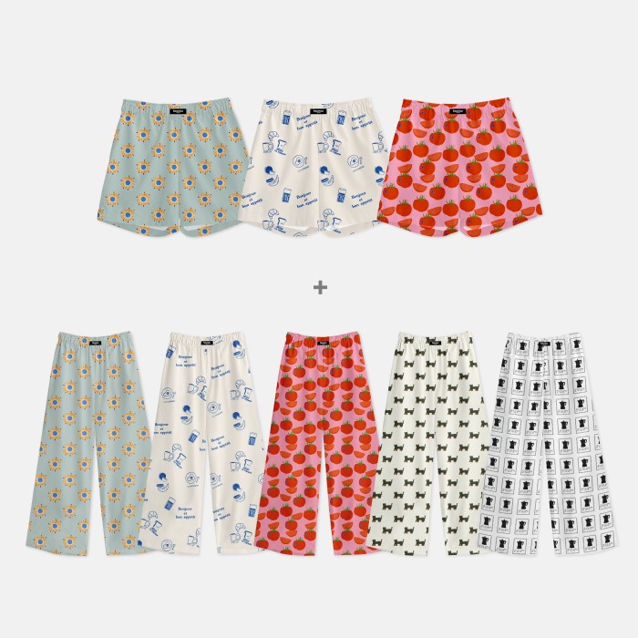 5가지 디자인, 3가지 타입의 파자마.