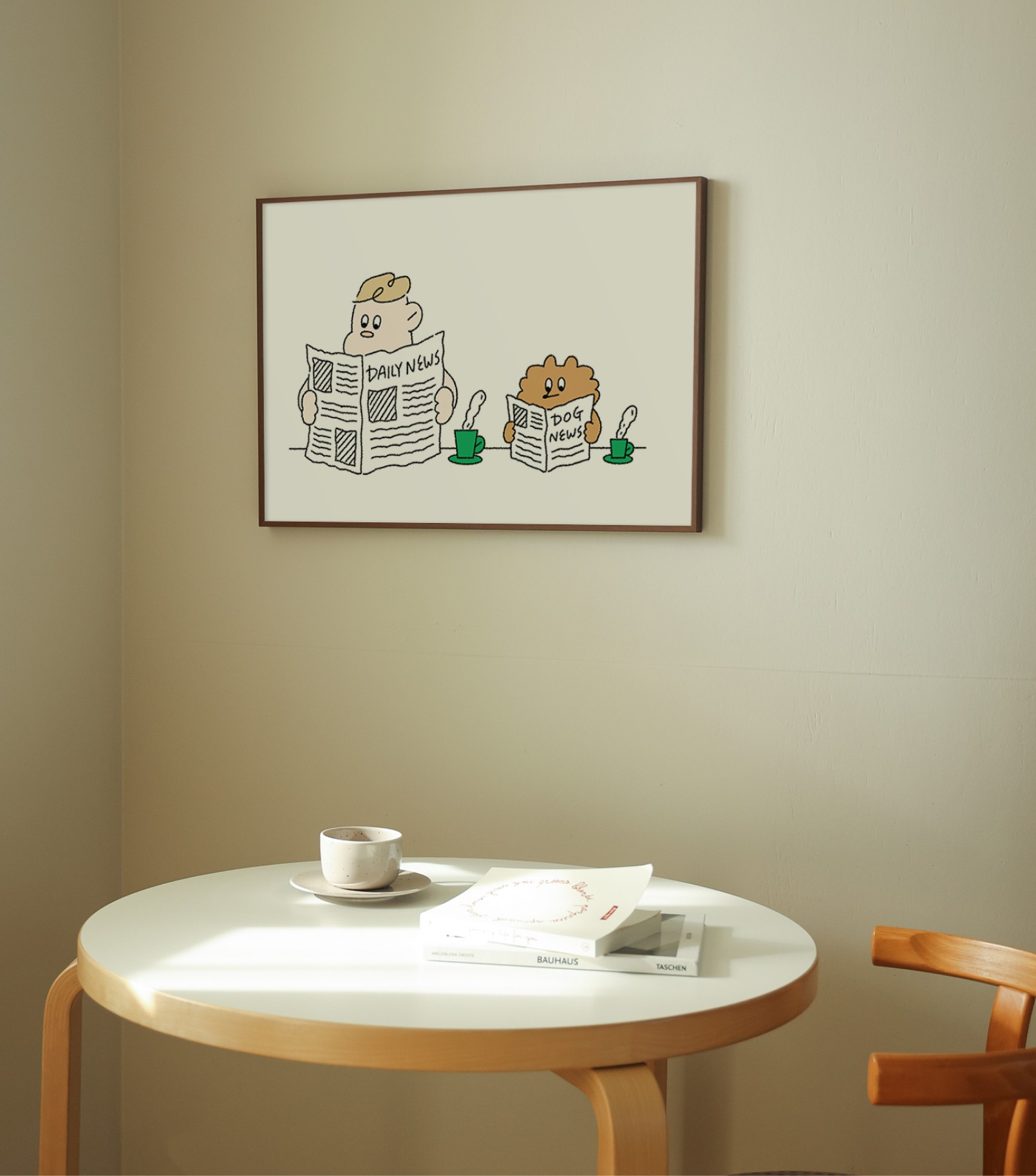 따뜻한 커피 한 잔, 바스락거리는 신문 넘기는 소리. 같은 자리