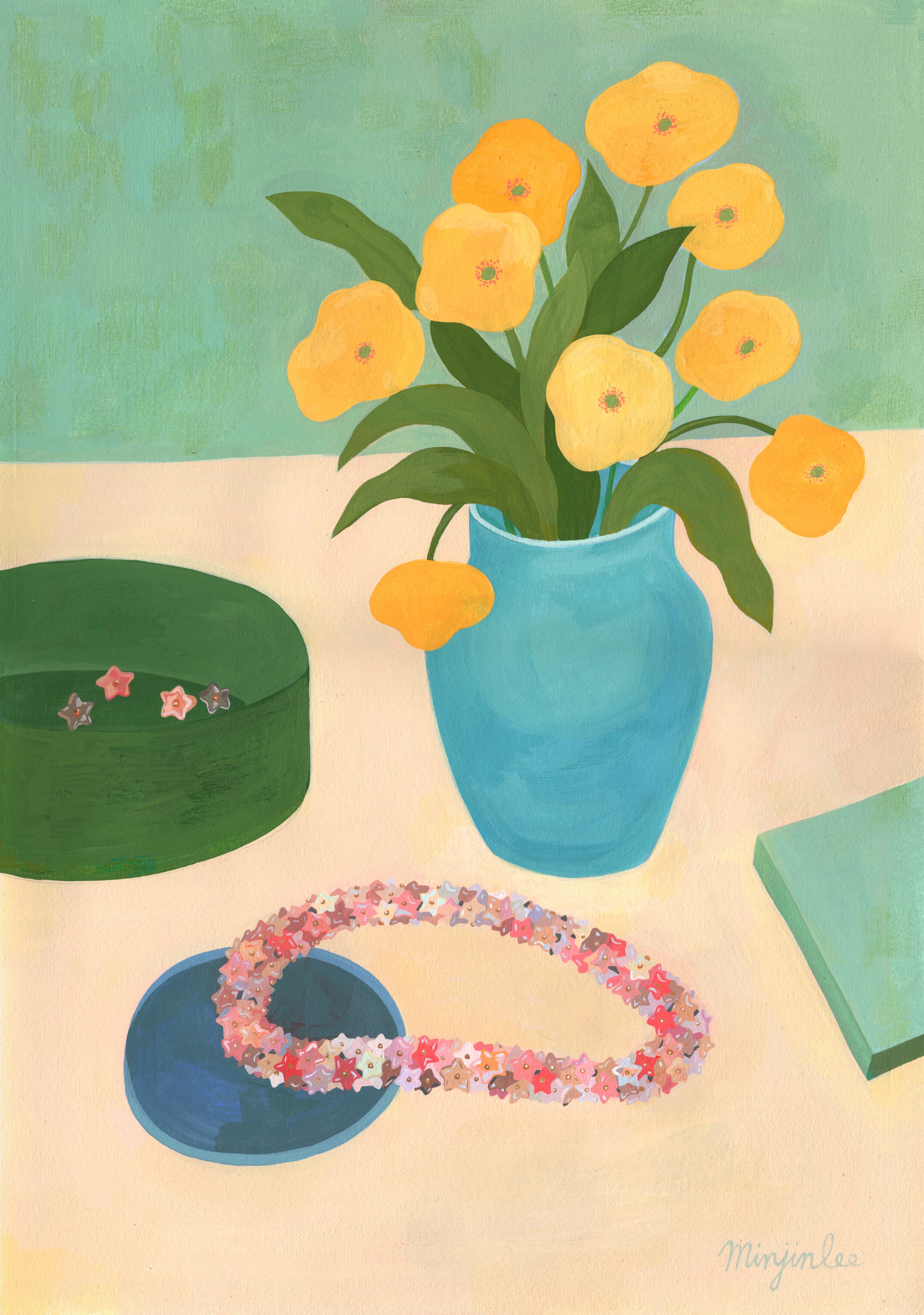 노란 화병과 별꽃 목걸이