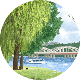 이 작품은 가을 한가운데, 한강을 산책하다 마주칠 법한