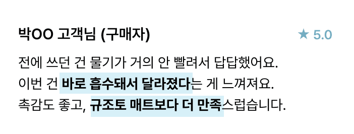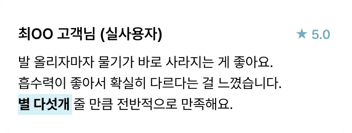 흡수력이 아쉬워요!