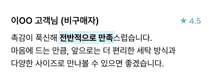 원단 본연의 부드러운 촉감을 오래 즐길 수 있어요.