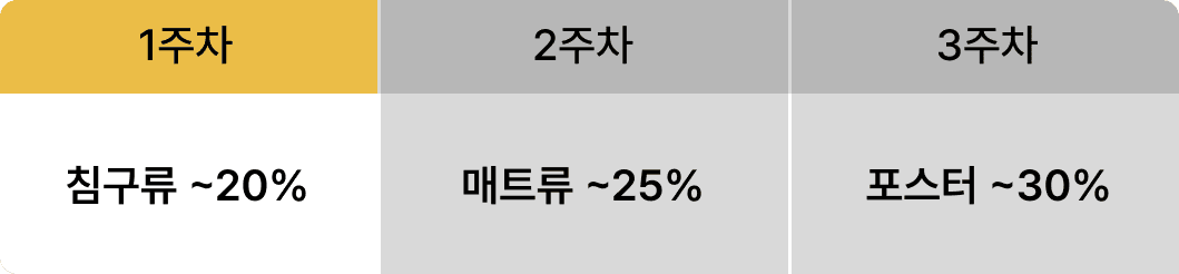 카테고리 위크 및 타임딜 추가 할인은 해당 기간 내 구매 건에 한해 적용되며, 기간 외