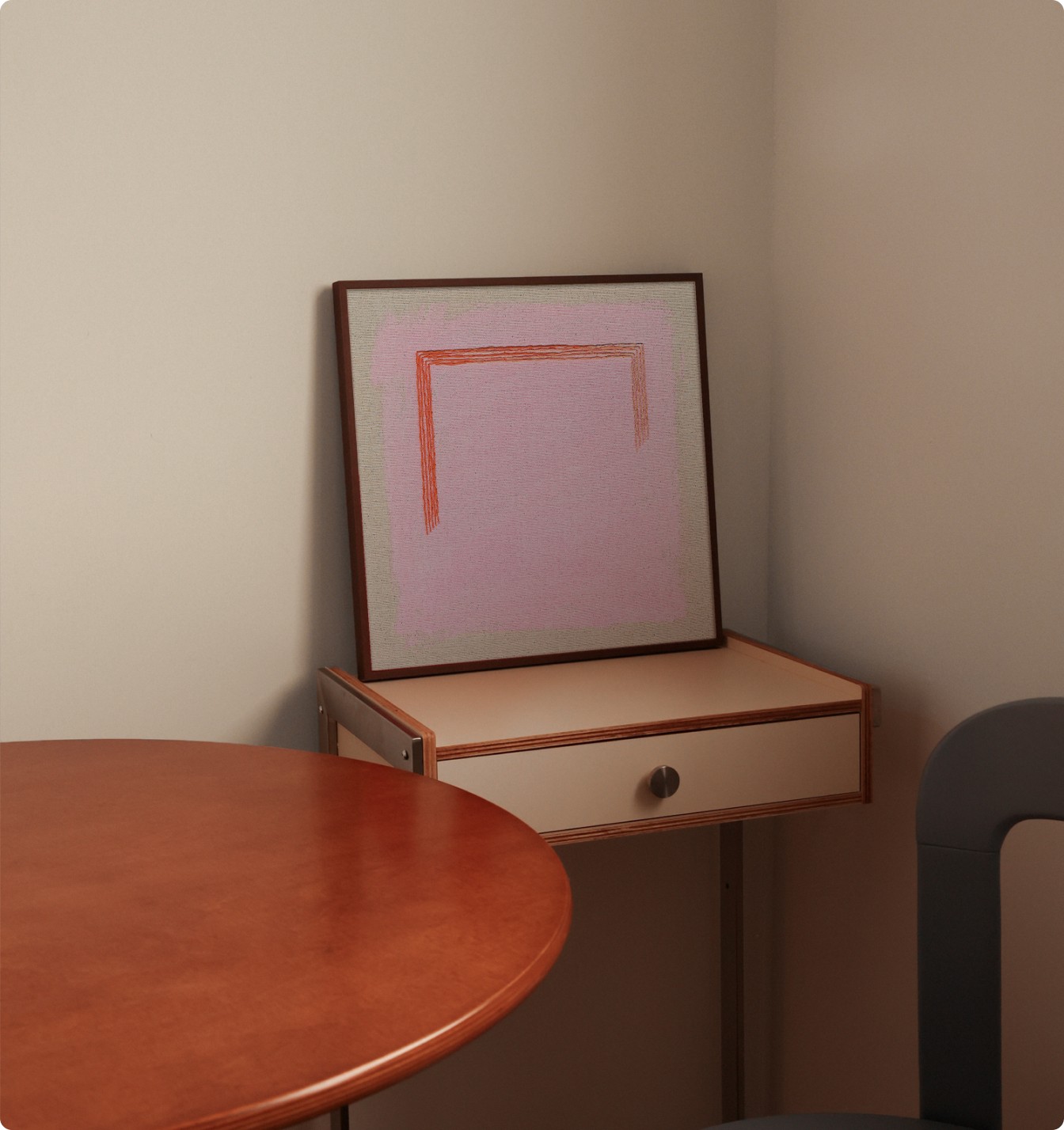 결합해 단순하면서도 깊이 있는 추상의 미학을 그려냅니다. 2025 트렌드 컬러인 모카 무스와 유독 잘