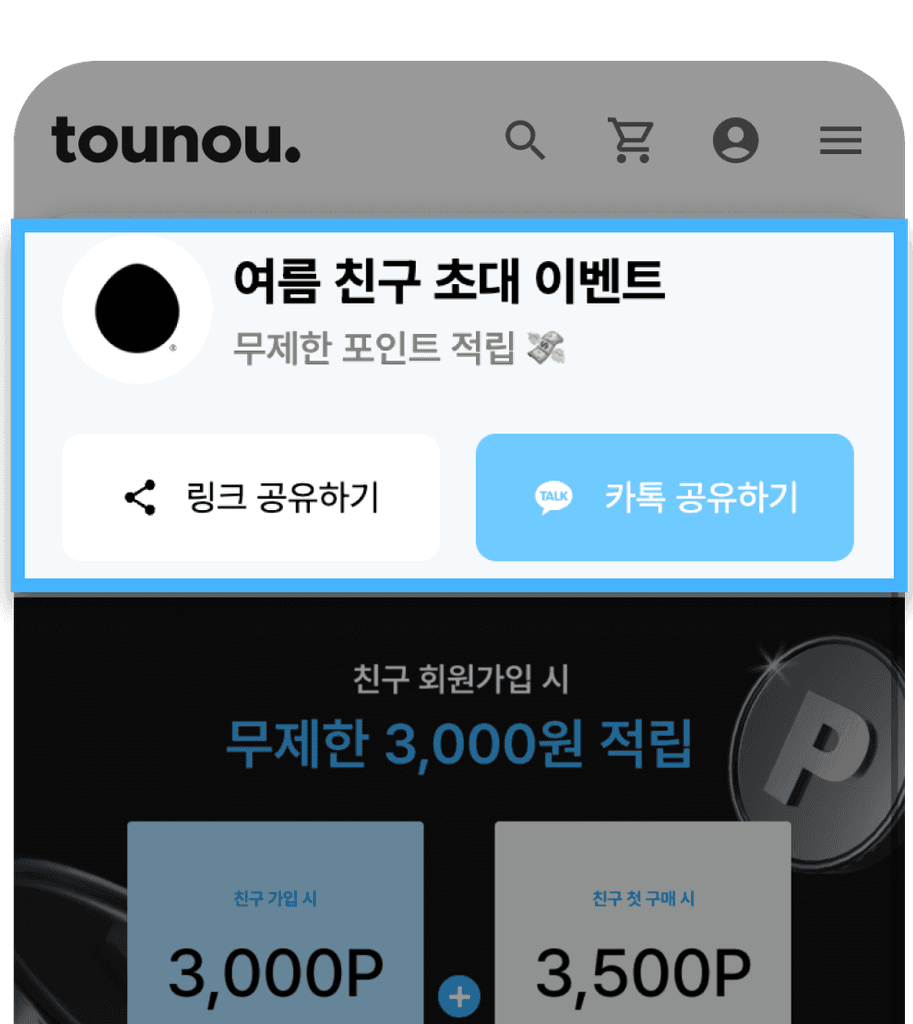친구 첫 구매 시 3,500P 추가 적립