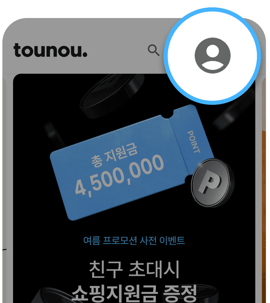 뚜누 사이트 우측 상단 아이콘 클릭 후