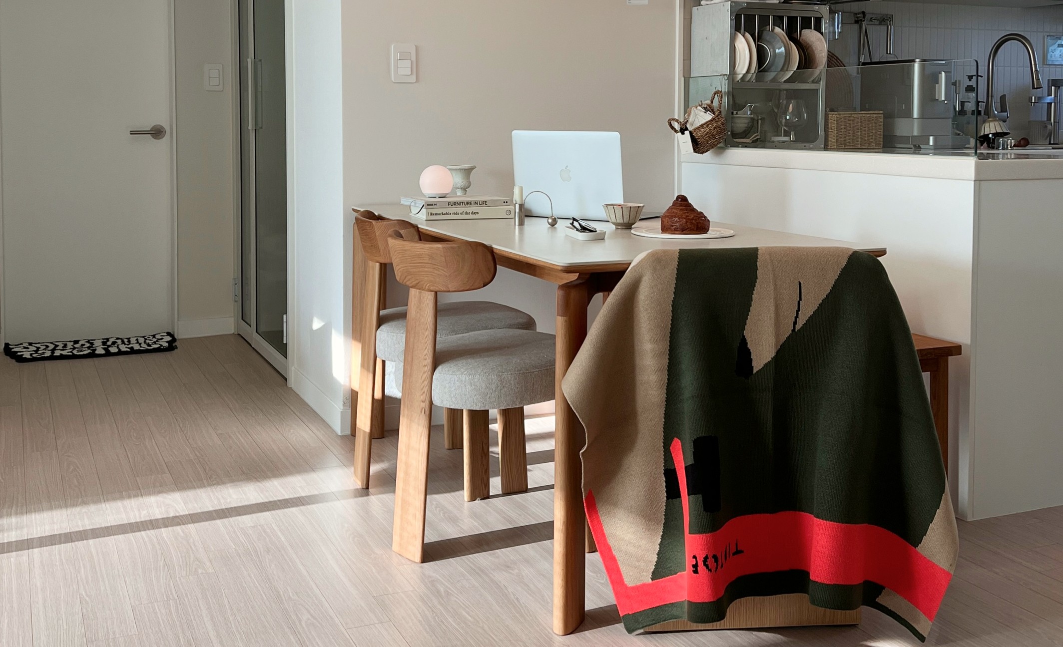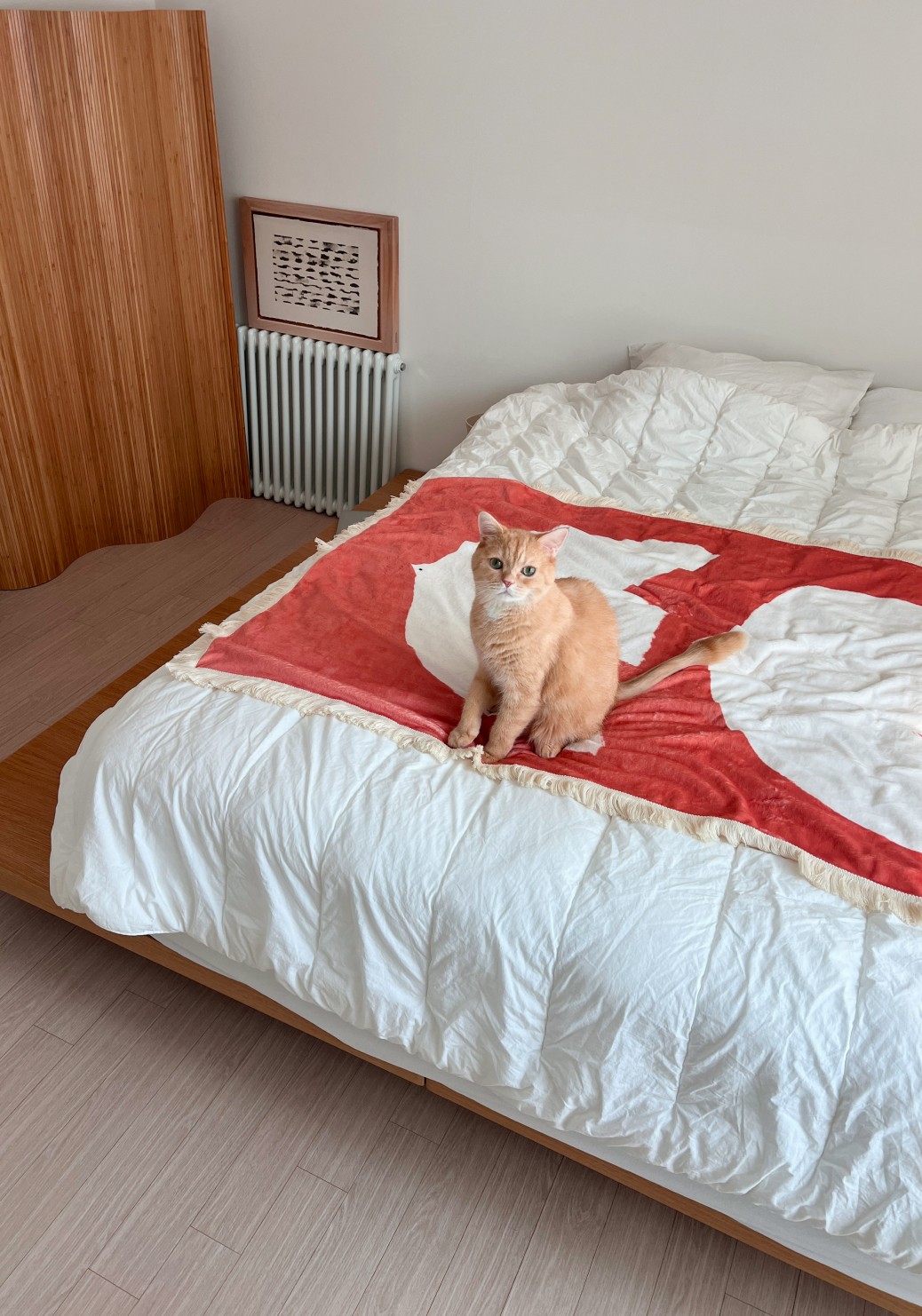 또, 포인트 컬러의 담요는 공간에 활력을 주면서도 차분한 균형을 잡아줬죠. 작은 소품 하나로도 분위기가 확 달라진다는 걸 다시 한번 느꼈어요. 담요 하나로 침대나 소파의 무드가 바뀌고, 액자만 걸어도 공간이 한층 세련되어지는 그런 변화들이 참 매력적이더라고요.