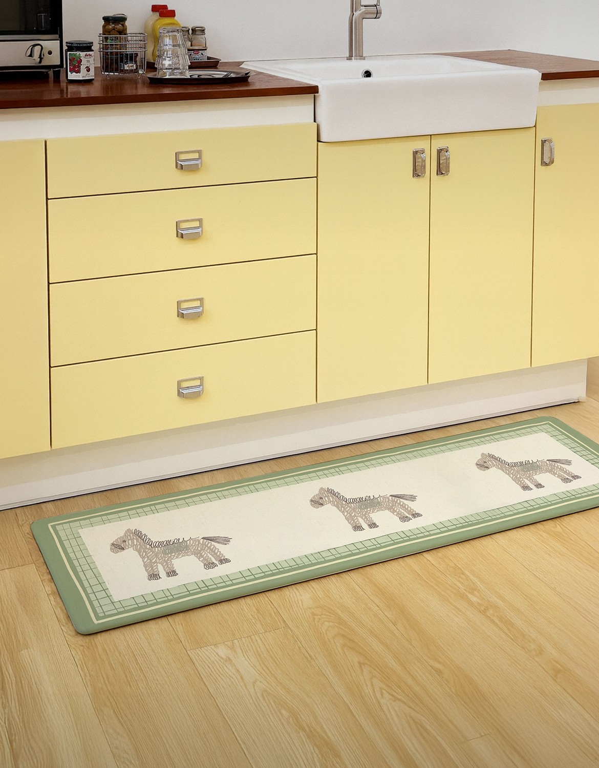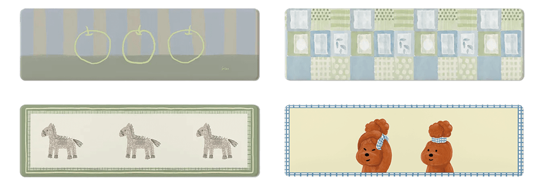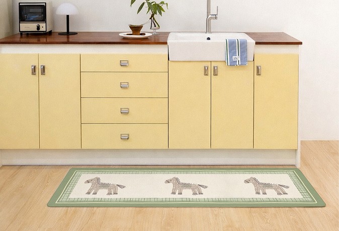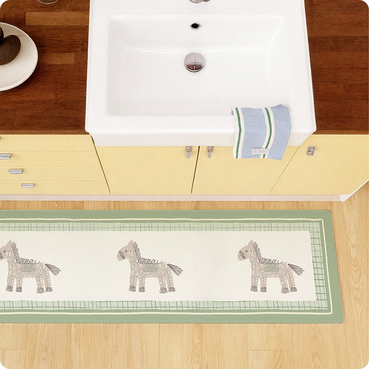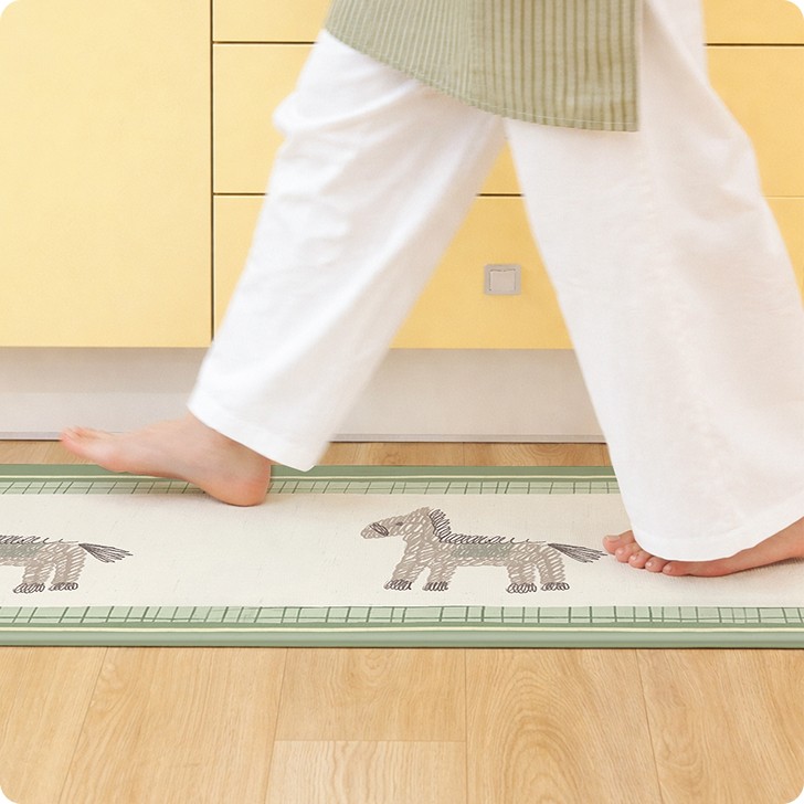 파스텔 톤 위에 말 모티프를 더한 주방매트입니다. 단순한